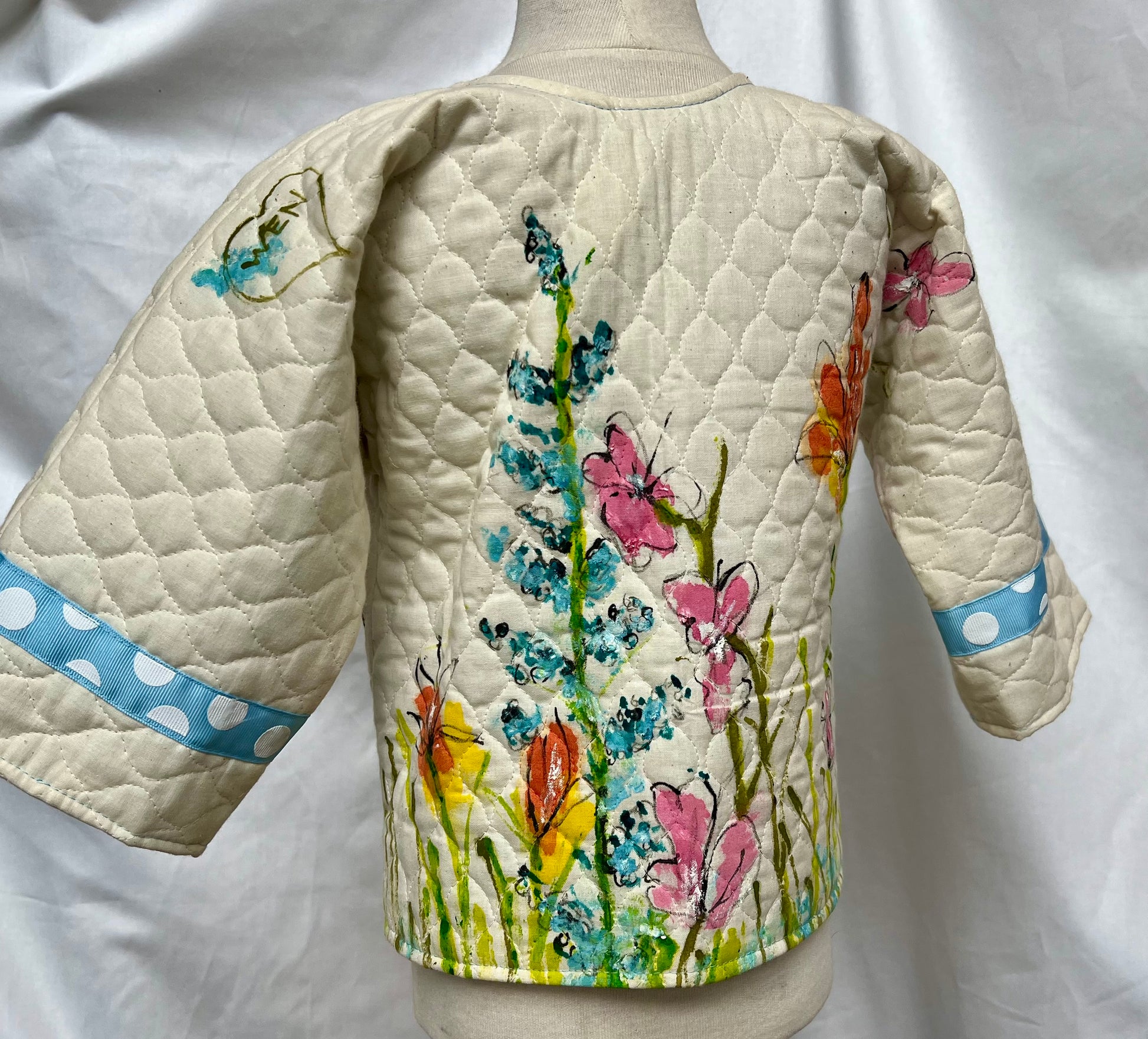 pre quilted hand painted, fully lined, 3/4 inch sleeve