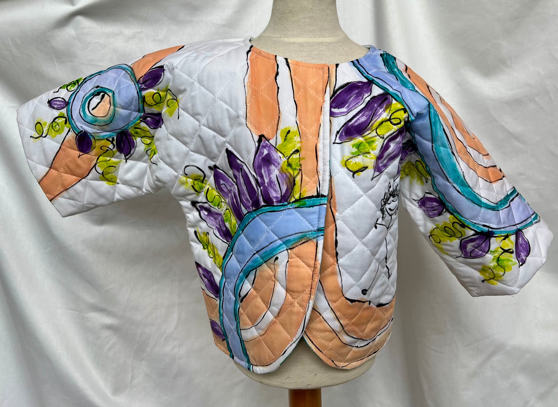 Pre quilted, hand painted,fully lined, 3/4 length sleeve,